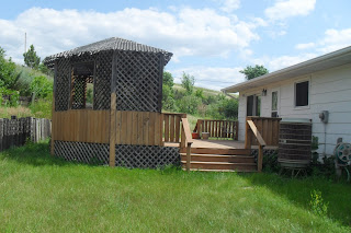 We were not planning on working on the house for awhile more. But WH gave me a HUGE present! This was the back gazebo. He knew how much I hated it. I mean how much I REALLY hated it. Seriously who would do this? The hot tub never stayed clean and it was just plain tacky and ugly. We still have some staining and finishing work to do but Tada! So much better dont you think? It is also insulated and finished on the inside. Just a few lights and we are ready for fall hot tub parties. I am so excited about this and let me tell you it is needed. I have been a whole year without my bath tub. I used my jacuzzi about once a week. I loved that thing. We havent had a bath tub here yet. Someday we will but..........yeah...... Ok just cuz I couldnt resist. Bel says Hi! Amida still isnt impressed.Lol
